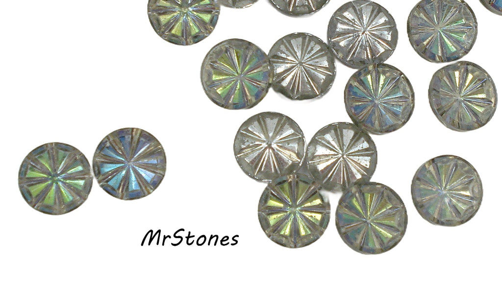 11mm (8801) (48ss) Green/Purple Blue Mix Pin Wheel Table Polished Inverted Round 4pc/$2.00