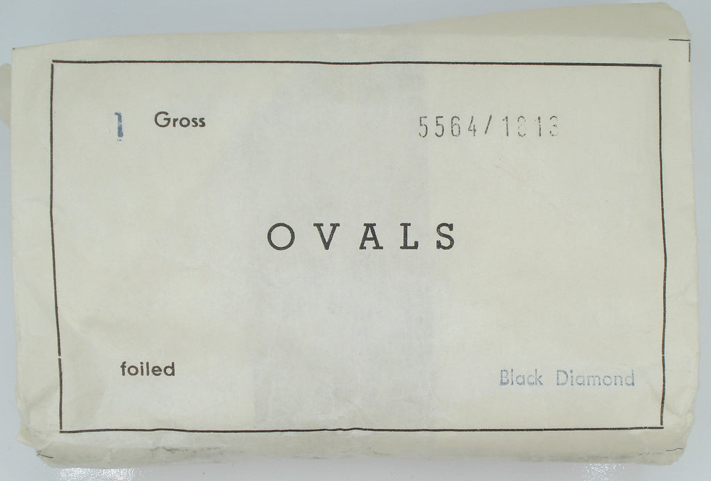 18x13 mm (2135) Black Diamond Oval Flat Top Cabochon 2.5mm Thick.  Gold Foiled Vintage West Germany Glass Stones.