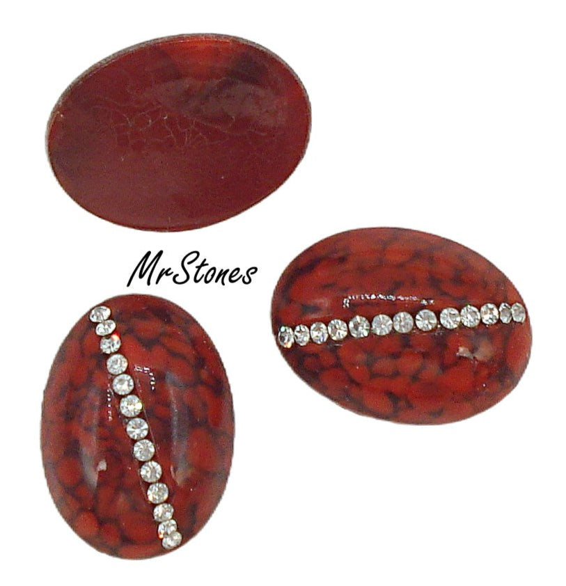 18x13 mm (3901) Red Matrix Crystal Rhinestone Row Oval Cabochon Swarovski Vintage Glass Stones.