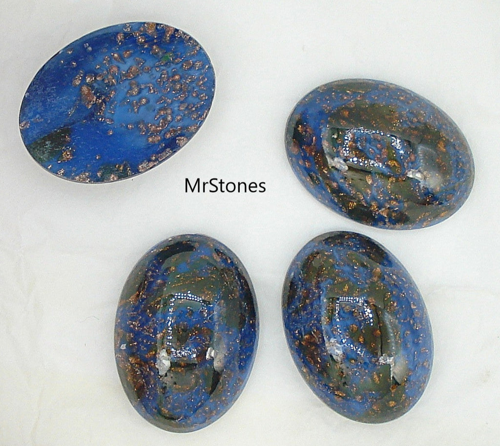 25x18 mm (1685) Lapis Blue Copper Glitter Oval Cabochon Czech Brown Matrix Vintage Glass Stones.