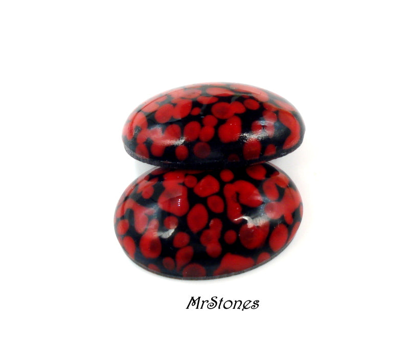 25x18 mm (1685) Red Matrix Oval Cabochons Czech Glass Stones.