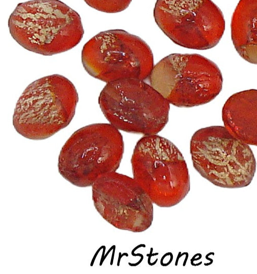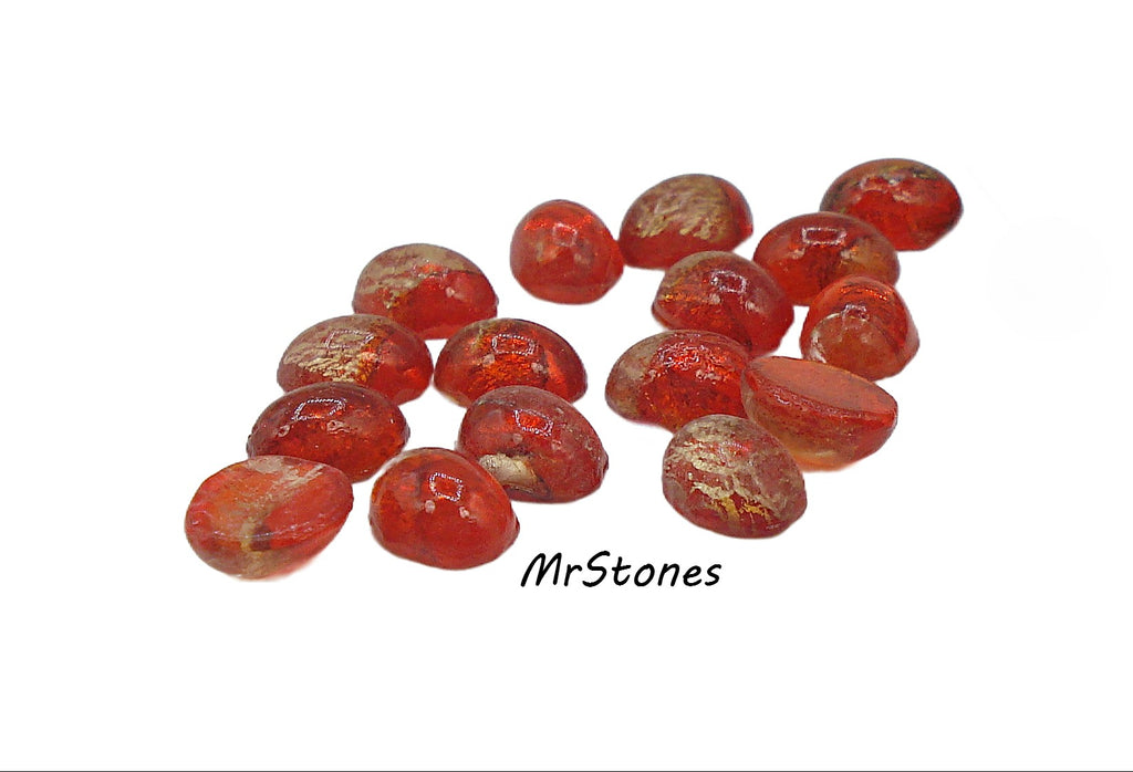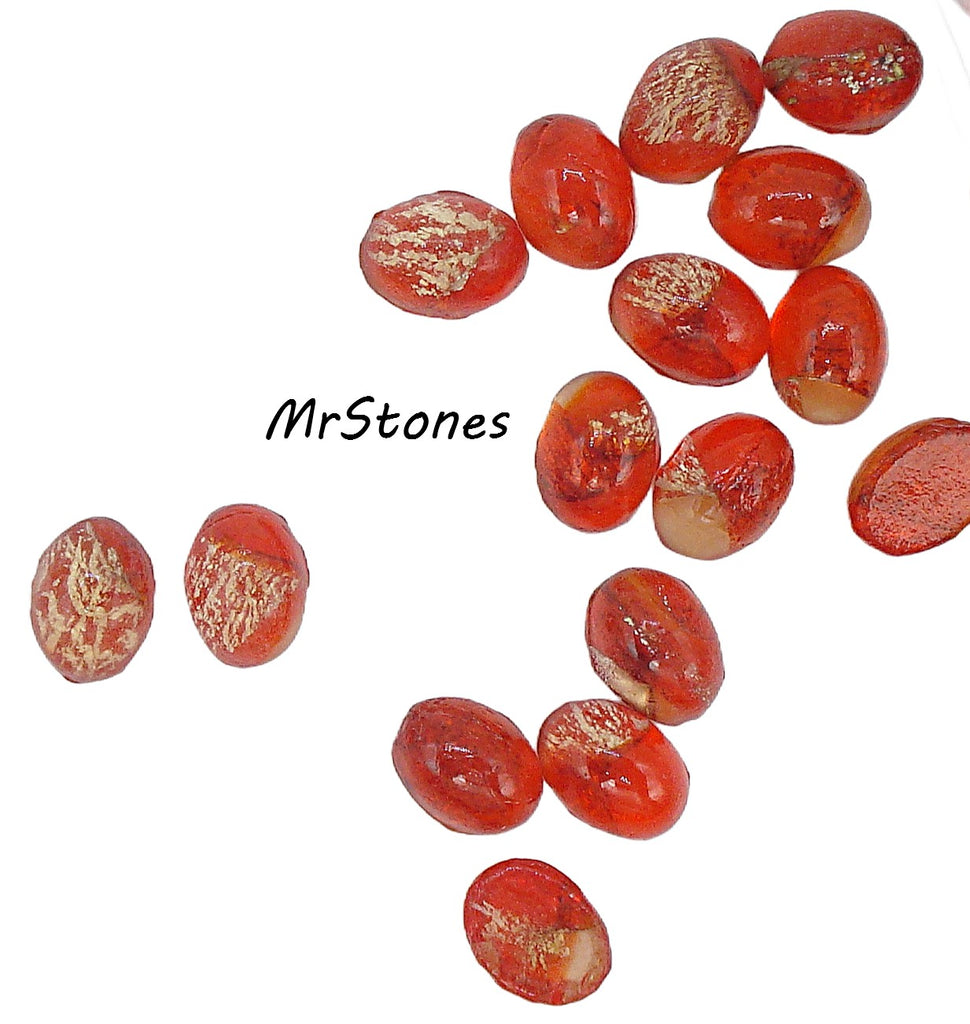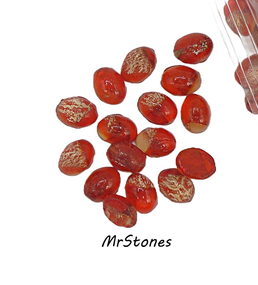 7x5mm (1685) Unfoiled Light Siam Gold Foiling Inside Oval Cabochons Vintage Glass Stones.