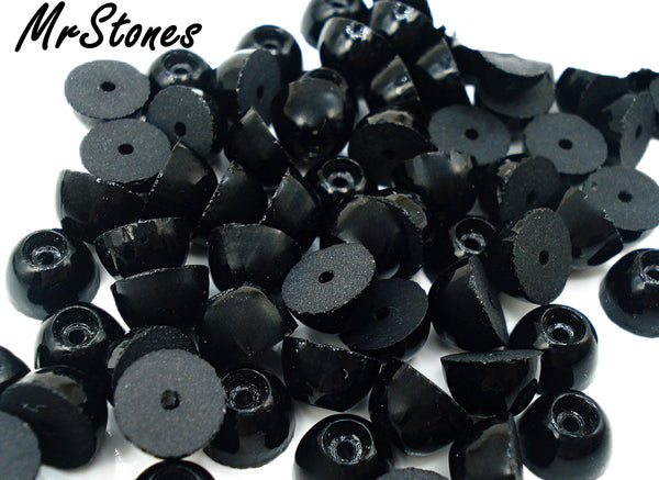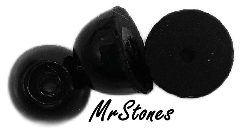 7 mm 7.0 (1684) Jet Black High Dome Round Cabochon No Foil w/2.5-3mm Hole Vintage Glass Stones.