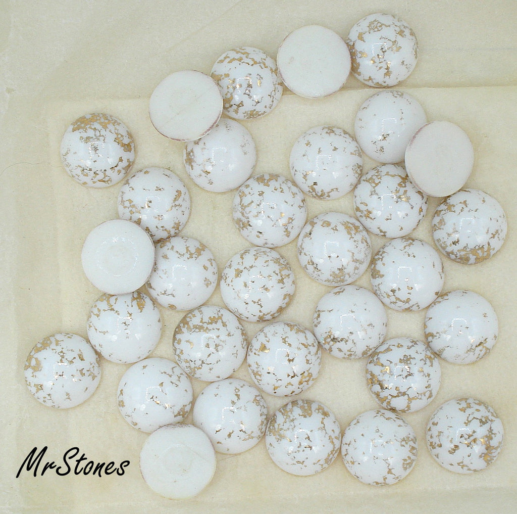 15 mm 15.0  (2195) Chalk White with Gold Round Cabochon West Germany Vintage Glass Stones.