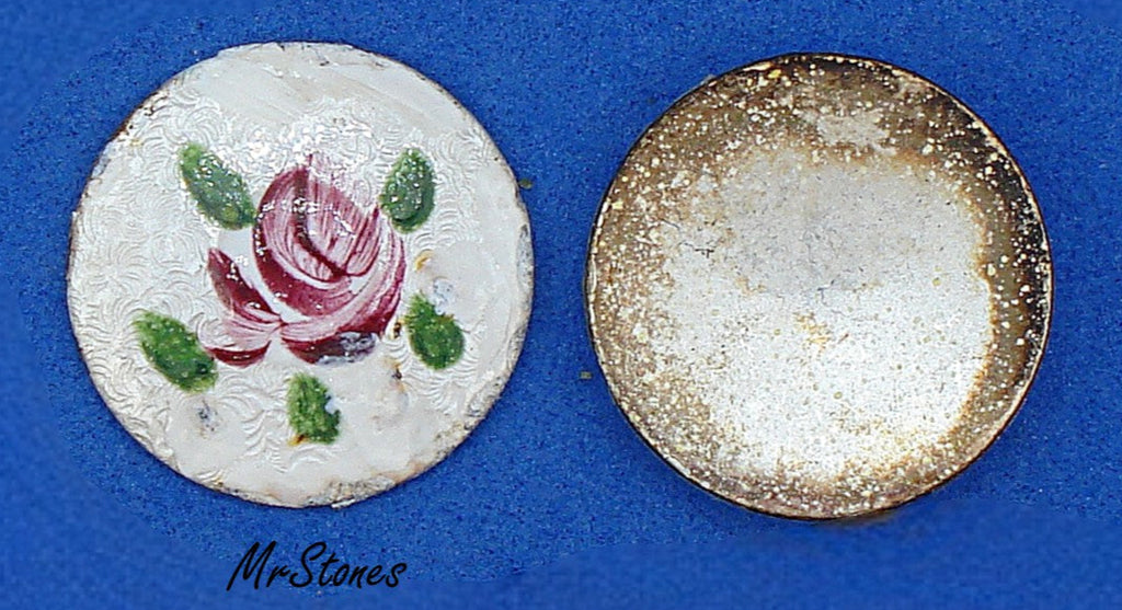 18 mm 18.0 Guilloche Enamel Flowers on Metal Low Domed Cabochon White Pink 2/$1.50