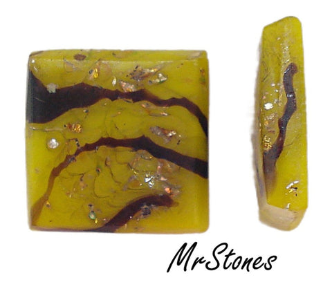 15mm (3615) Yellow Opaque Mosaic Abstract Glitter Glass Bezel Square Shape