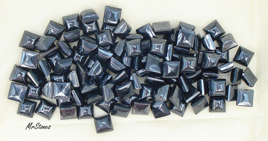 8 mm 8.0 (2062) Hematite Glass Square Cabochon West Germany Unfoiled Vintage Glass Stones.