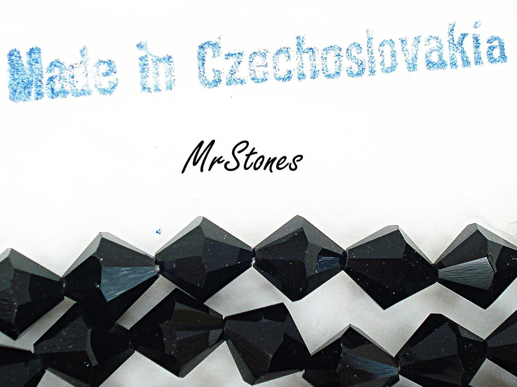 10 mm 10.0 (BEAD) Jet Black Bi-Cone Vintage Czech Glass Beads.
