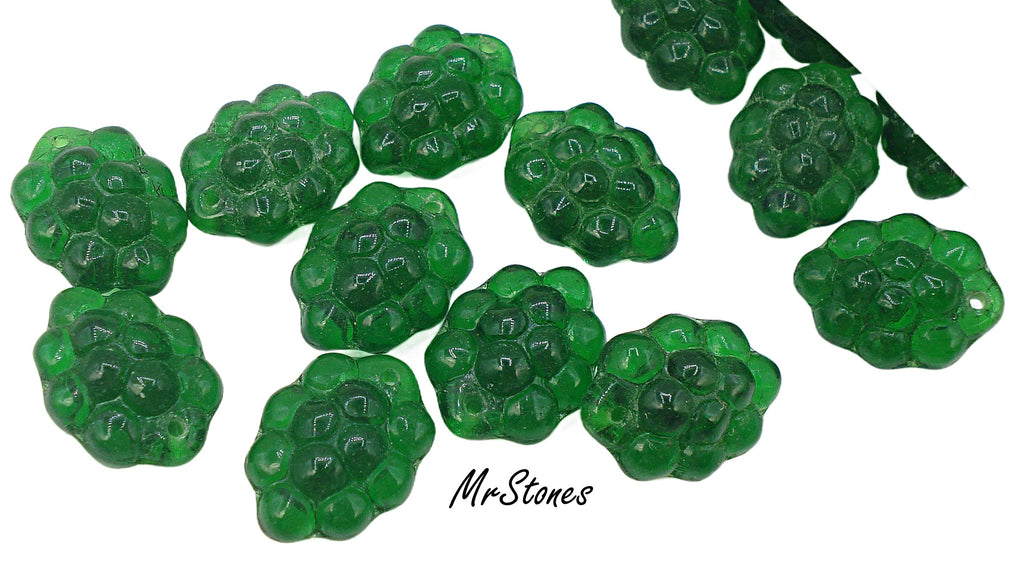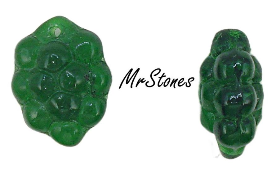 14x11 mm (BEAD) Glass Emerald Green Grapes Bunch Beads Dangles Vintage Czech.