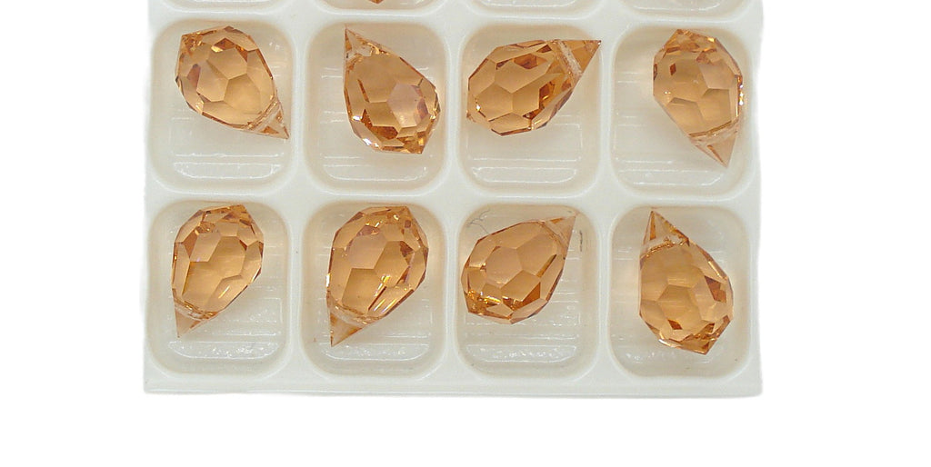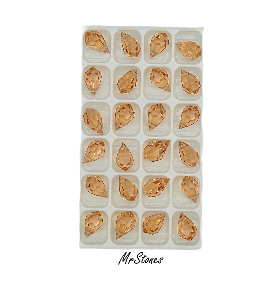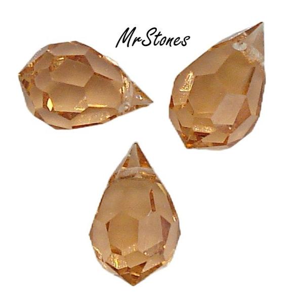 10x6 mm (CZ136) Czech Peach Glass Broilette Teardrop Pear Shape Dangle Bead Vintage Fully Faceted.