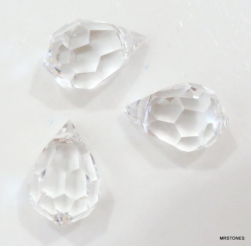 10x6 mm (SCZ13) Crystal Clear Briolettes Faceted Czech Glass Beads.