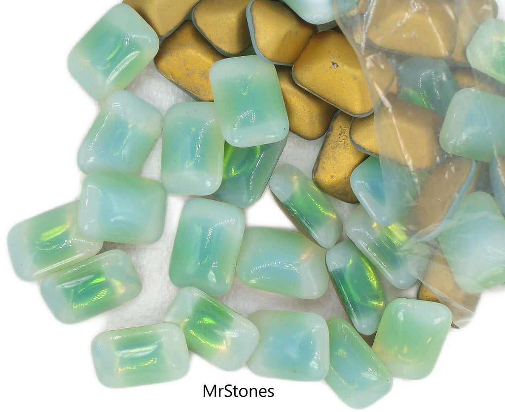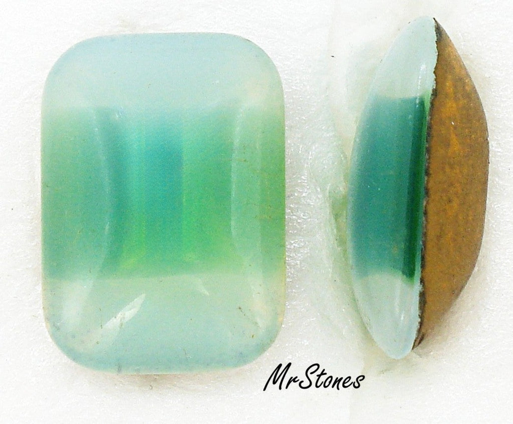 18x13 mm (3436) Green Sabrina Cushion Octagon Buff Top Doublet Gold Foiled Vintage Glass Stones.  Dome Buff Top Pointed Back.