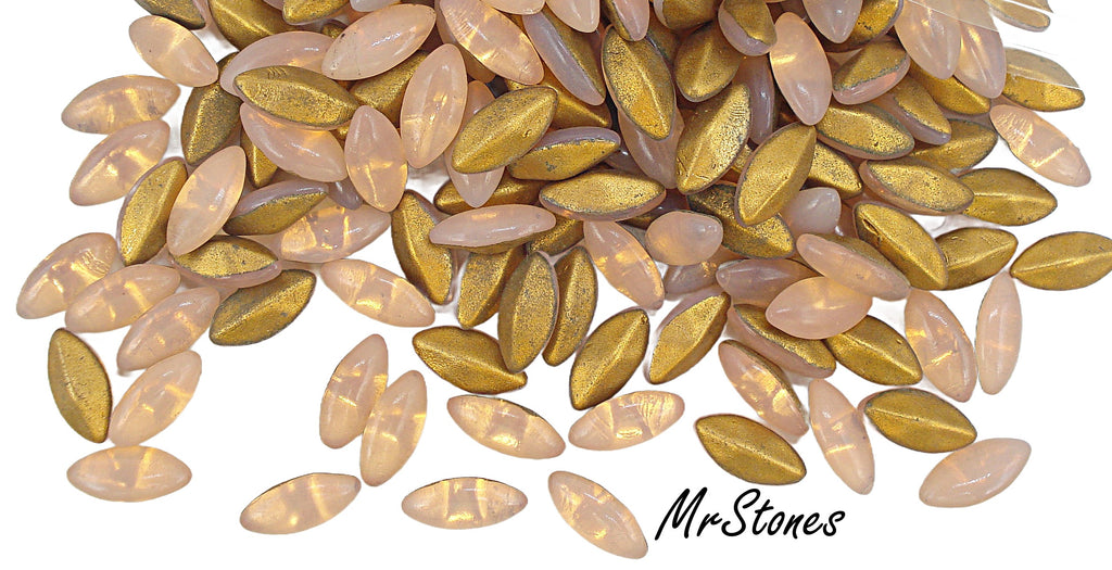 10x5 mm (3146) Pink Opal Glass Gold Foiled Marquise Navette Buff Top Doublets Vintage Stones.  Domed Top Pointed Back.
