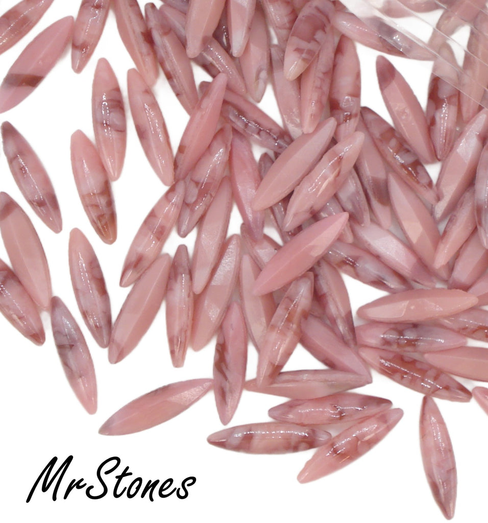 15x4 mm (3146) Opaque Pink Rose Matrix Marquise Navette Buff Top Doublets Vintage Glass Stones.