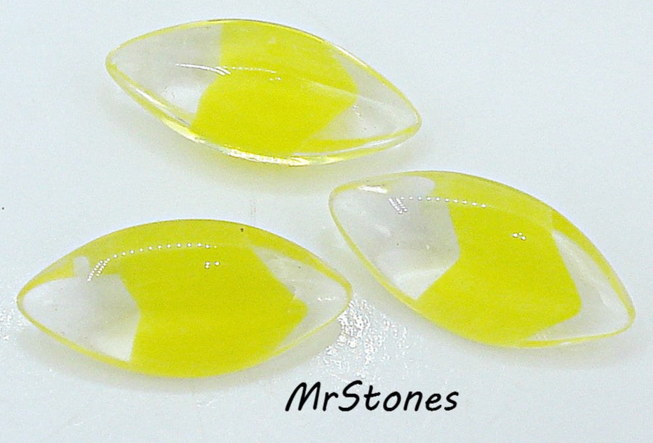 15x7 mm (3146) Clear Yellow Sabrina Marquise Navette Unfoiled Buff Top Doublet Dome Top Pointed Back Vintage Glass Stones.