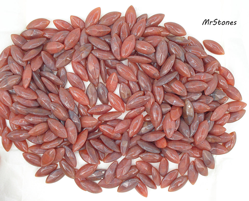 15x7 mm (3146) Cornelian Orange Brown Marquise Navette Buff Top Doublet West Germany Vintage Glass Stones.