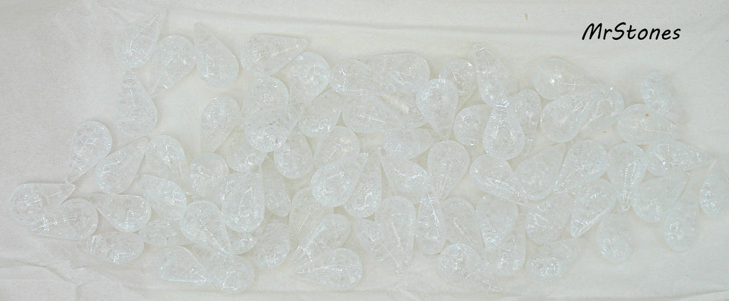 13 x 7.8 mm (3101) White Crackle Pear Teardrop Shape Buff Top Doublet West Germany Dome Top Pointed Back Vintage Glass Stones.