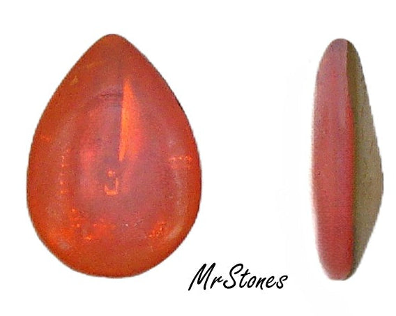 18x13 mm (3101) Hyacinth Orange Pear Pendeloque Buff Top Doublets Gold Foiled Vintage Glass Stones. Low Dome Top Pointed Back.