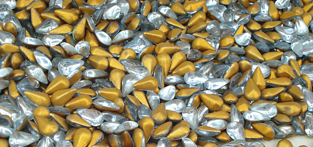 8x4.8 mm (3101) Light Sapphire Buff Top Doublet Pear Shape Gold Foiled Vintage Glass West Germany Stones. 1pc/$0.30 or 1pkg 1080/$14.95