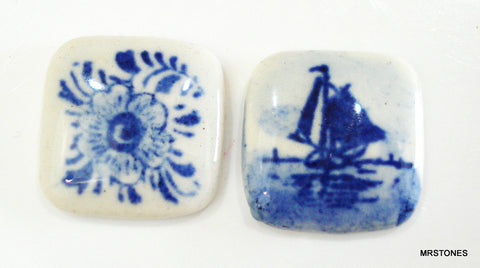 15.5mm (DPSQ) Antique Square Porcelain Cabochon Pottery