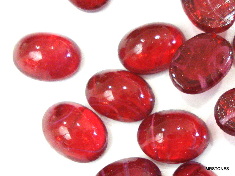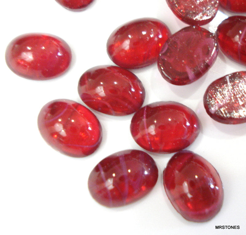 8x6 mm (1685) Flawed Ruby Glass Ovals Cabochons Vintage Stones.