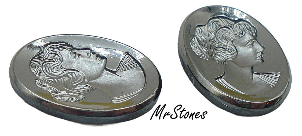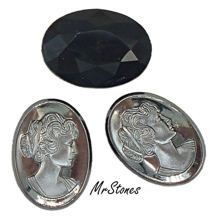 18x13 mm Glass Hematite Intaglio Cameo Oval Shallow Faceted Back Vintage Stones.