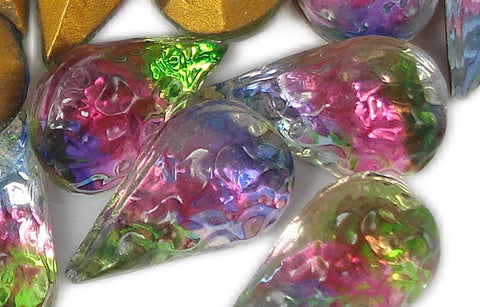 10x6mm (3101) Emerald AB Nugget Top Pear Shape Gold Foiled