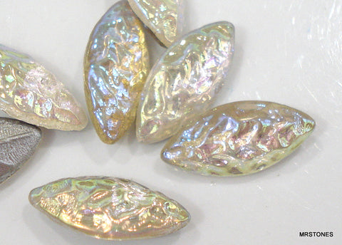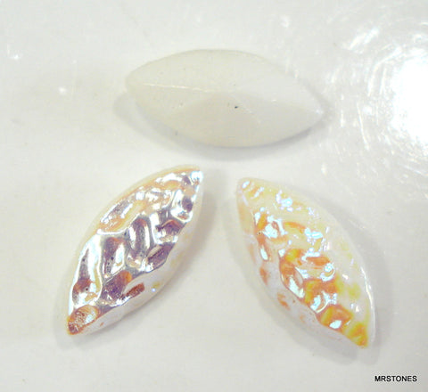 15x7mm (LEAF) Chalk White AB Nugget Top Leaf Marquise Navette