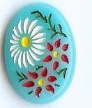 18x13mm Glass Floral Painted Glass Turquoise Color Oval Intaglio