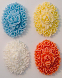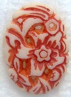18x13mm Oval Ivory Color Red Recessed Floral Flower