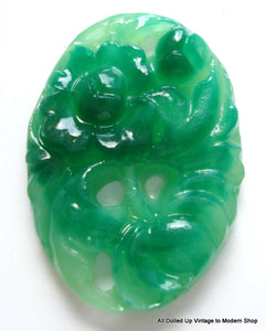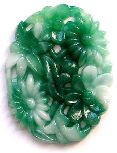25x18mm Glass Green Jade Floral Molded Oval Concave Back
