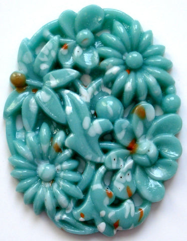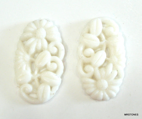 25x18mm Glass Jaded Molded Floral Flower Oval