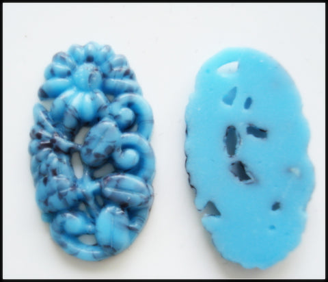 29x14mm Glass Turquoise Matrix Molded Flower Flower Oval