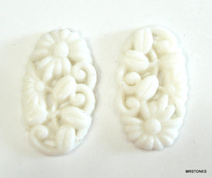 24x14mm Glass White Molded Oval Flower