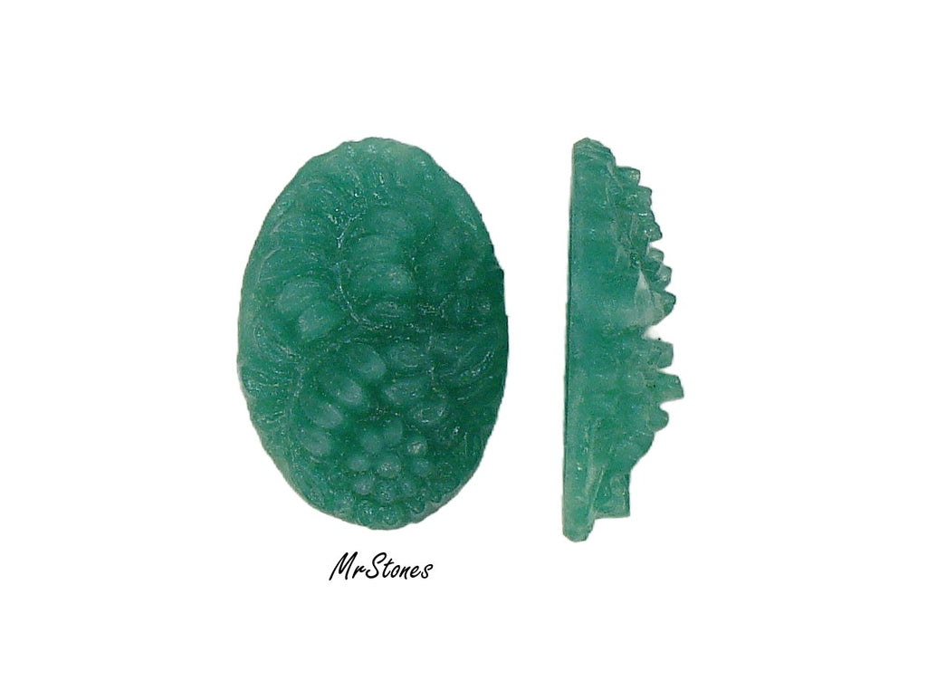 25x18 mm Glass Green Jade Floral Molded Oval Concave Back Vintage Stones.