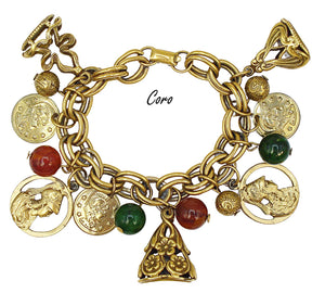 One of a Kind Bracelet Glass Multi Color Bi-Cone Beaded Gold Tone Beads