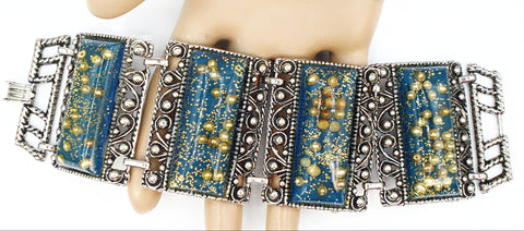 Eisenberg Bracelet Sappharines with Swarovski Aquamarine Dentelles 7" x 1"
