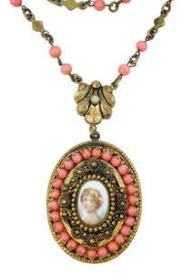 Judy Lee Brooch Pendant Marquises Baroque Faux Pearls High Dome Chinese Jade Cab 2.5"