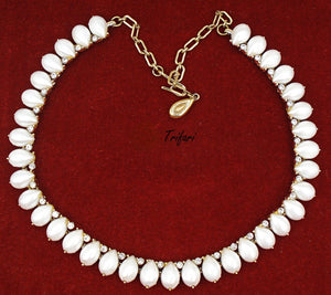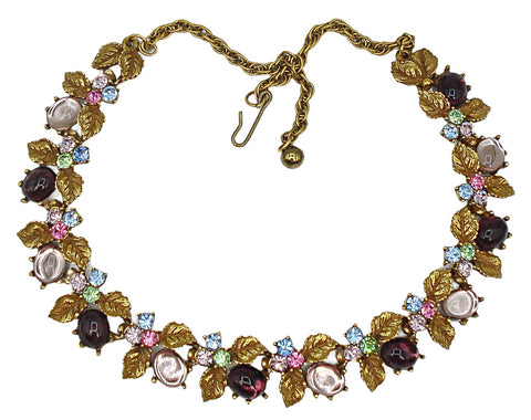 Trifari Necklace 17" x 3/4" Gold Tone Assorted Colors Shapes Rhinestones