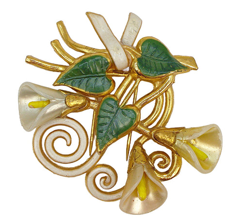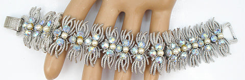 Eisenberg Ice 2" Brooch Grape Bunch White Pearls Crystal Rhinestones