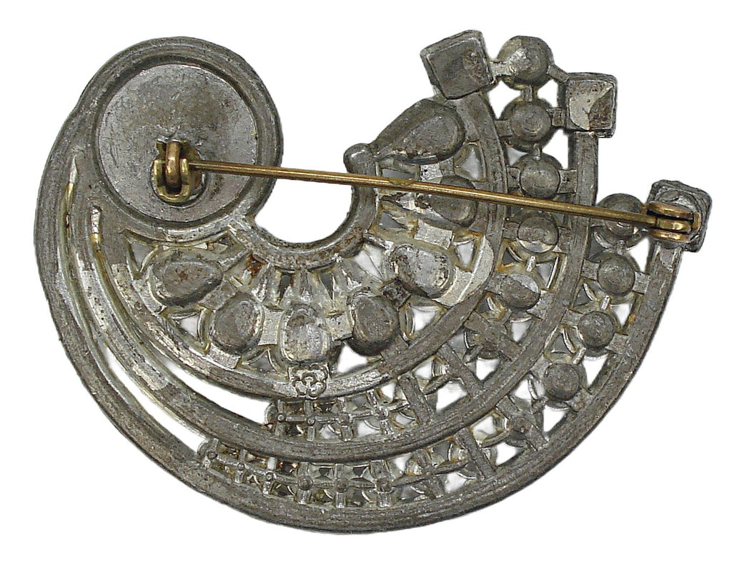 Pot Metal 2 1/4" Elegant Design Brooch Crystal Dark Sapphire Professionally Re-stoned