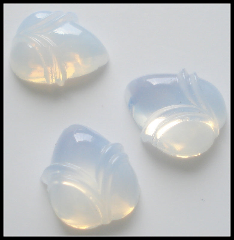 12x10 mm (LEAF) Glass White Opal Acorn