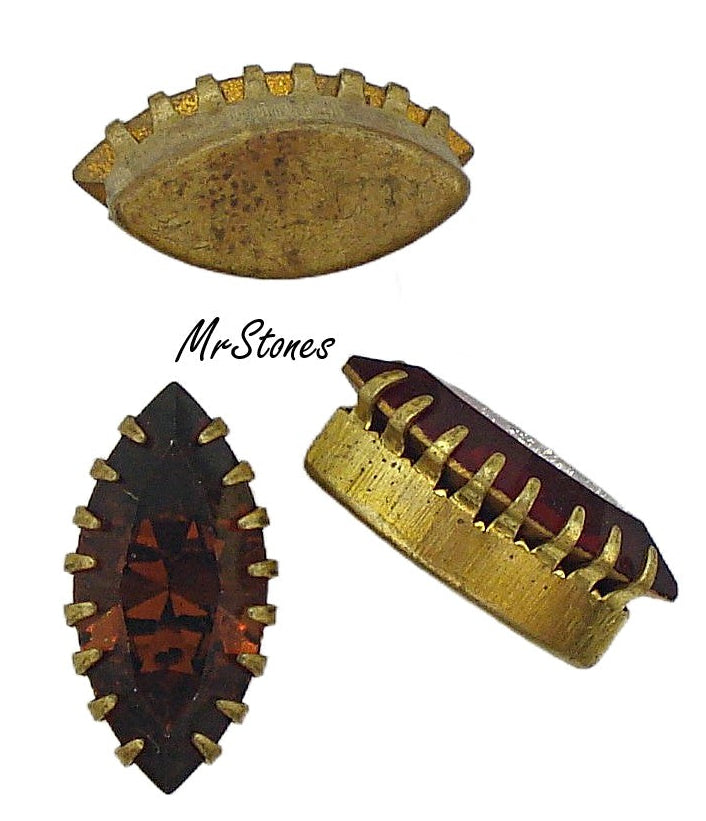 15x7 mm (F4200) Brass Complex Setting Siam or Smoked Topaz Marquise Navette Vintage Findings with M/C Rhinestones.