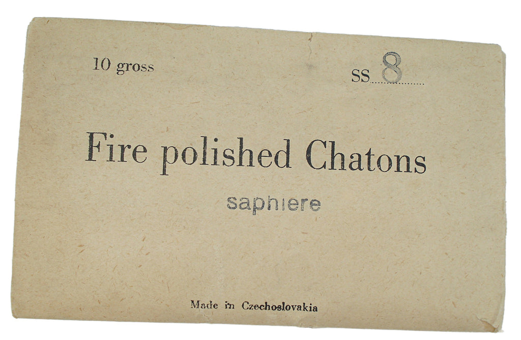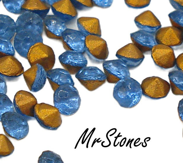 2.3 - 2.4 mm (1100) (17pp) Czech Sapphire Fire Polished Round Chaton Gold Foiled Vintage Rhinestones.