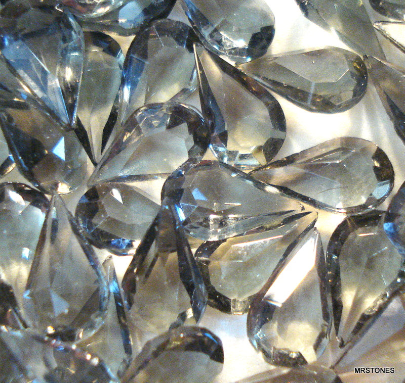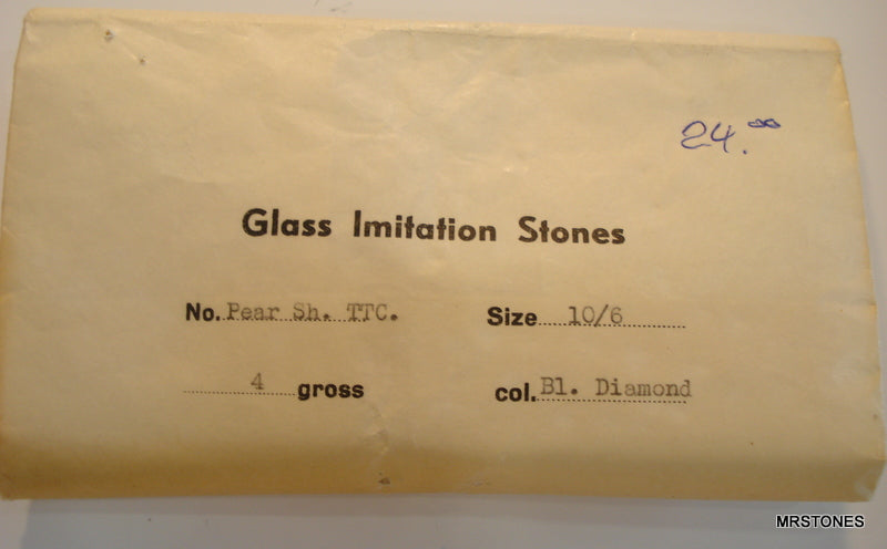 10x6 mm TTC Black Diamond Unfoiled Pears Pointed Back Vintage Rhinestones.