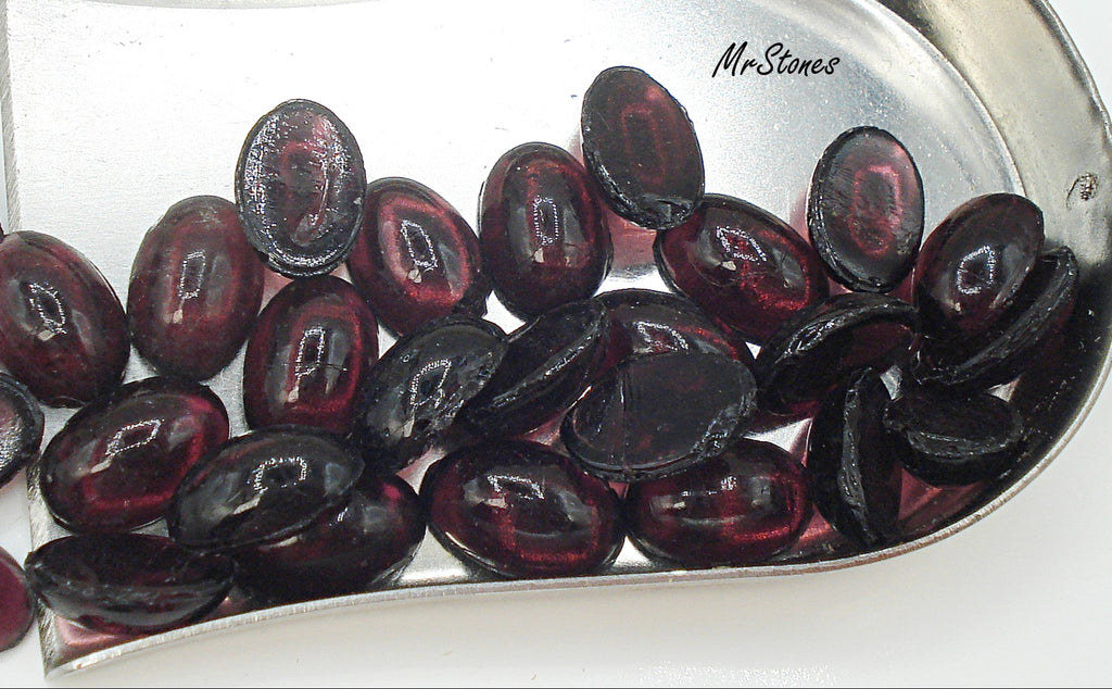 10x7 mm (2195) Darker Amethyst Oval Cabochon No Foil Vintage Glass Stones.