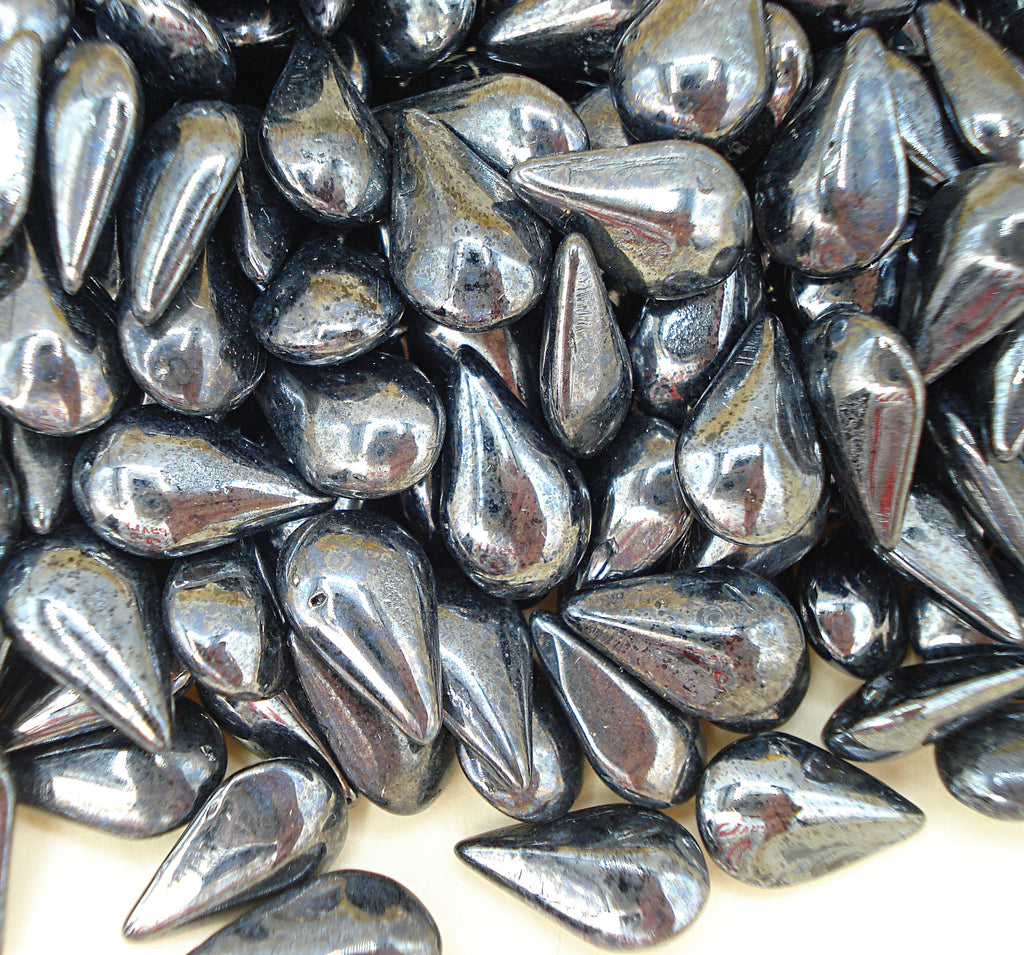 10x6mm or 13x7.8 mm 13x8mm (3101) Gun Metal Hematite Pear Shape Teardrop Buff Top Doublets Vintage Glass Stones.