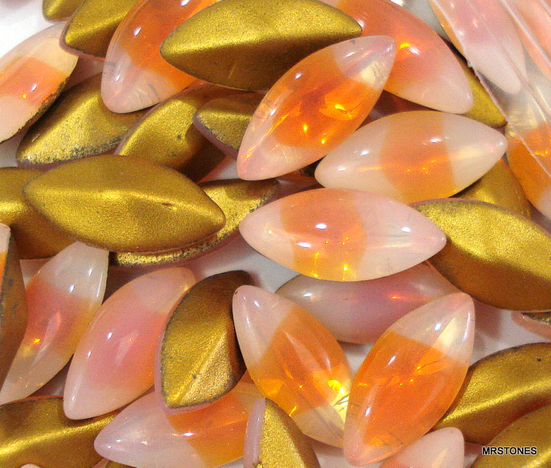 15x7 mm (3146) Orange Sabrina Marquises Navettes Buff Top Doublets Gold Foiled Vintage Glass Stones.
