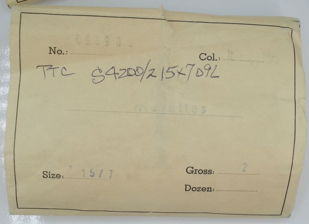 15x7mm (4200/2) TTC Light Sapphire Marquise Navette West Germany Gold Foiled Vintage Rhinestones. 5pk/$1.00