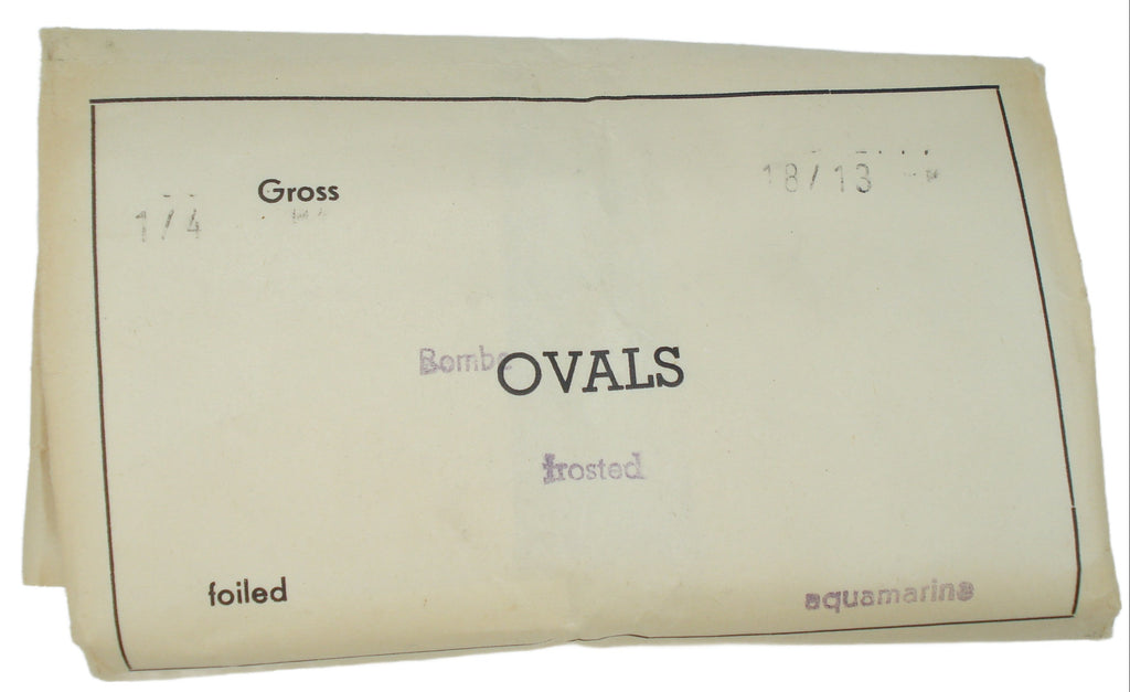 18x13 mm (2195) Aqua Frosted Matte Ovals Cabochons Gold Foiled Vintage Glass Stones.